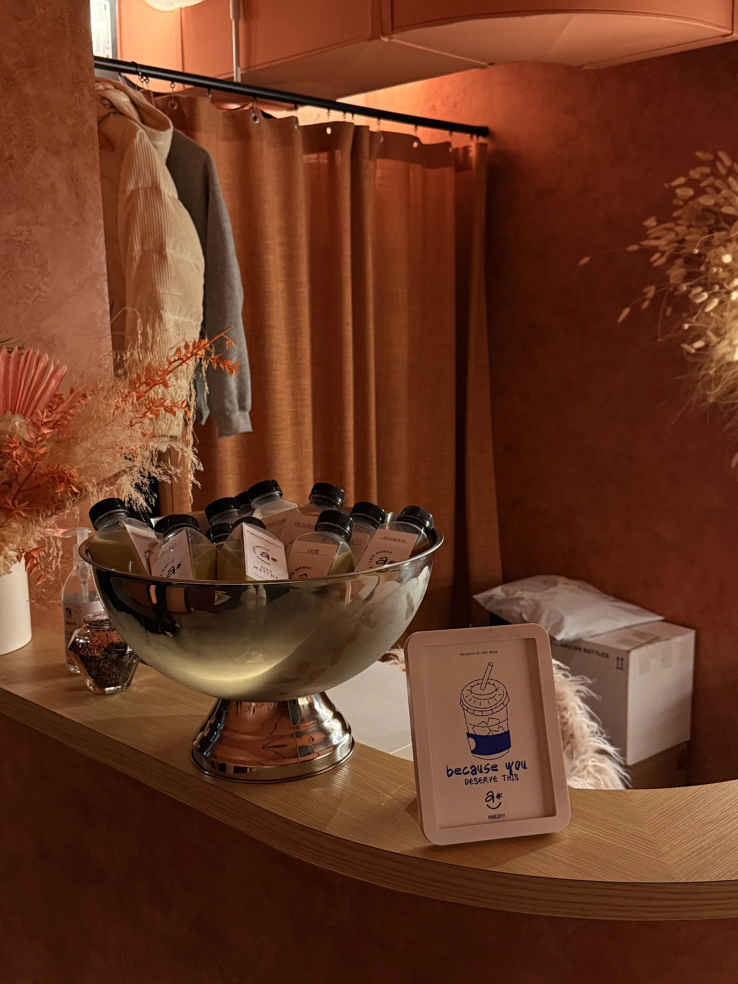 We partnered with Ottawa Social Girls Club for a bottled latte experience — every guest pre-ordered their drink ahead of time and showed up to find their name written right on the bottle. Such a small detail but it made it feel really personal and intentional. Cute from start to finish.